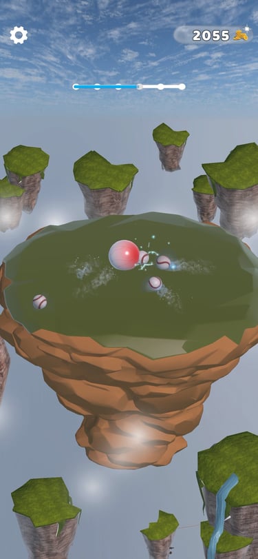 A physics-based action game where the player controls a rolling ball navigating an island environment. The core objective is to eliminate waves of enemy balls by using momentum and collision dynamics. Gameplay is driven by velocity, bounciness, and impact force, allowing the player to strategically push back and knock out opponents. The game emphasizes timing, positioning, and reactive control, creating a fast-paced and engaging experience built around emergent physics interactions.